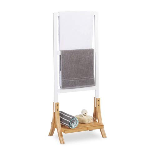 Buy Free-Standing Bamboo Towel Holder, H x W x D 104 x 41 x 28.5 cm, 3 Rails and 1 Shelf, Clothes Stand, in UK.