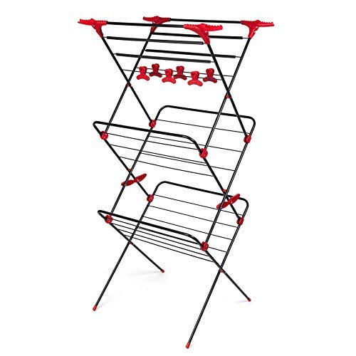 Results Russell Hobbs LA053794 Three-Tier Clothes Airer, Steel, Black, Red
